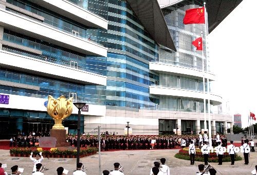 七月一日,香港特别行政区在金紫荆广场隆重举行升旗仪式﹐庆祝香港特别行政区成立十二周年。 中新社发 张勤 摄