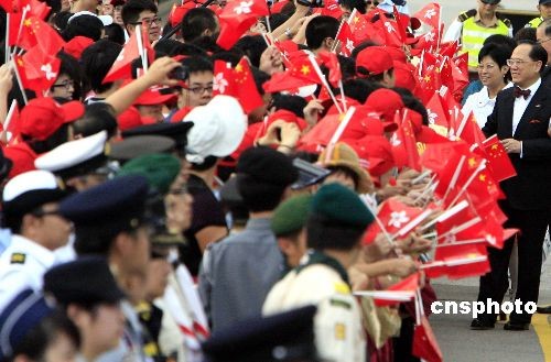 香港特区行政长官曾荫权等嘉宾出席升旗仪式。