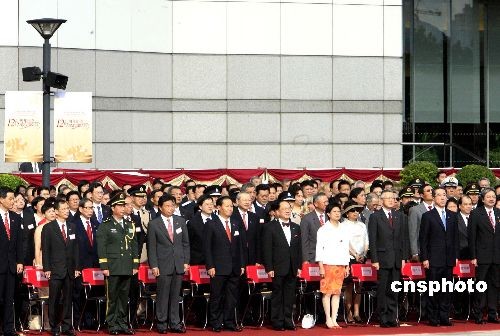 香港特区行政长官曾荫权等嘉宾出席升旗仪式。中新社发 张勤 摄