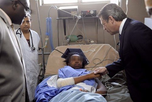 法国官员看望幸存的女孩