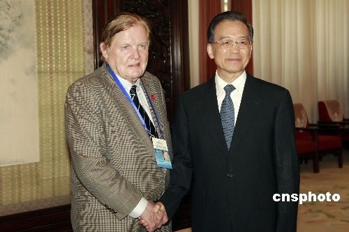 图:温家宝会见出席“全球智库峰会”外方代表(5)