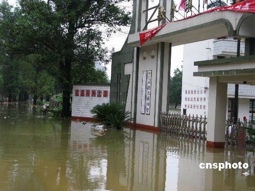 七月三日,河水涌入县城,老城区被水淹没,学校停课。中新社发 蒙鸣明 摄