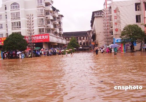 图:桂林超警戒水位1.96米 街道被淹(3)