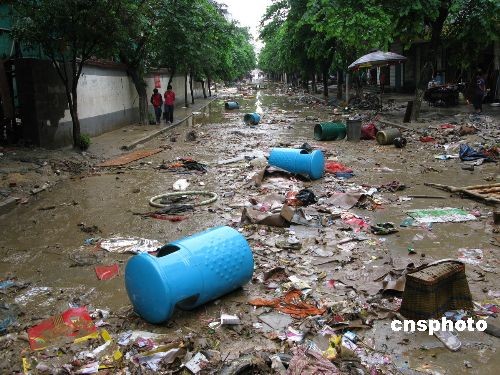 图:广西融水洪水退却 市区内一片狼籍(4)