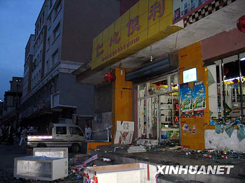 7月5日,乌鲁木齐天池路的一家商店被砸。刘兵 摄