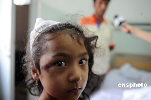 7月6日,一位名叫迪丽娜·玛丽的少女在乌鲁木齐友谊医院接受治疗,在5日晚发生的严重暴力犯罪事件中,她被暴力犯罪分子打伤。截至6日19时,乌鲁木齐市“7·5”打砸抢烧严重暴力犯罪事件死亡人数增至156人,受伤人员1080人。 中新社发 廖攀 摄