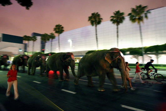 杰克逊公众追思会:马戏团大象抵达现场(2)