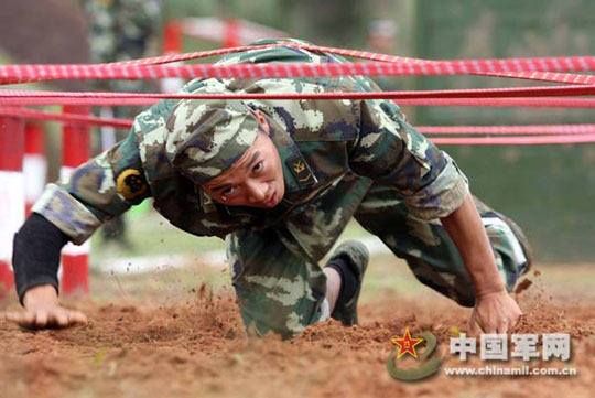 军旗猎猎红,沙场秋点兵。近日,在武警云南总队玉龙湾训练基地,随着8枚信号弹腾空而起,10名射手击中靶牌,“科学练精兵,一切为打赢”10个鲜艳夺目的大字依次呈现在官兵面前,拉开了武警云南总队2009年特战分队军事比武竞赛的序幕。来自全总队20余个单位的120余名特战队员,齐聚一堂同台竞技。郝亚鑫 摄