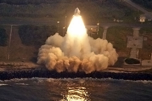 7月8日,在位于美国弗吉尼亚州的沃洛普试飞基地,NASA(美国航空航天局)成功测试了未来可能使用在“猎户座”载人飞船的逃生系统。“猎户座”是NASA“星座计划”中的新型载人航天系统,目前正处于设计评审阶段,为2015年载人飞往国际空间站和2020年重返月球做准备。