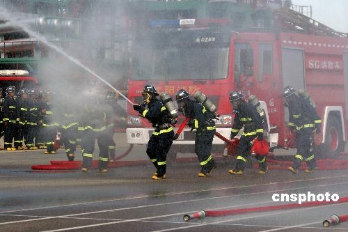 公安消防部队灭火救援攻坚组队员现场演练(4)