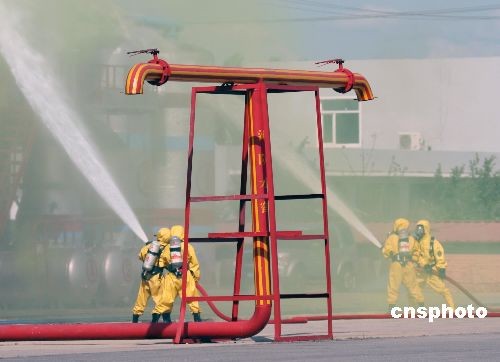 公安消防部队灭火救援攻坚组队员现场演练(5)