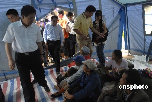 7月9日云南省姚安县发生6级地震后,云南省有关部门立即启动应急预案,并派出人员赶赴现场参与救灾。云南省长秦光荣也于地震当日赶赴灾区指挥救灾工作。图为7月10日,秦光荣带领云南各部门领导前往此次地震受灾最为严重的官屯乡看望受灾民众。他表示,请灾区民众放心,有党和政府在,一定会帮助大家渡过难关。中新社发 保旭 摄