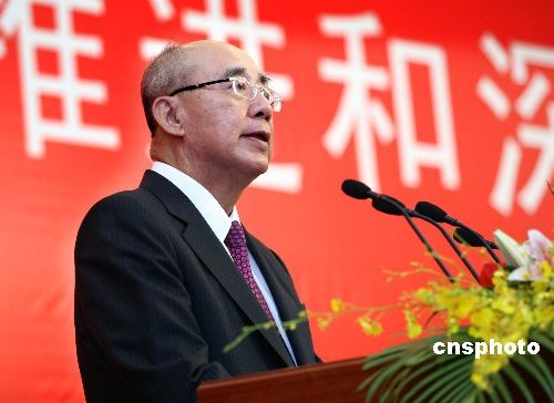 中国国民党主席吴伯雄,7月11日上午在第五届两岸经贸文化论坛开幕式上讲话。中新社发 宋吉河 摄