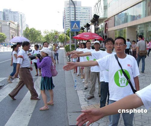 组图:江苏无锡街头亮起“人体红绿灯”(2)