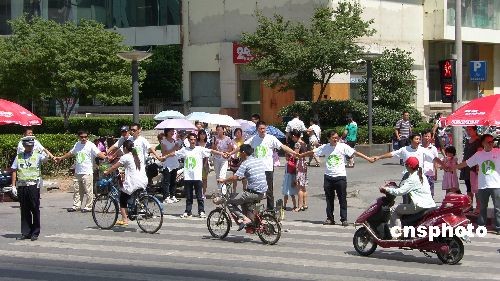 组图:江苏无锡街头亮起“人体红绿灯”(4)