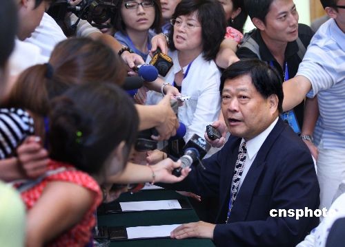 7月12日下午,在湖南省长沙市举行的第五届两岸经贸文化论坛举行汇报专题研讨,会间记者踊跃采访民进党代表范振宗先生。本届论坛共有来自将近80家媒体单位的446名新闻记者报名参与报道,包括大陆记者391人、台湾记者33人、香港记者14人和外国记者8人。中新社发 宋吉河 摄