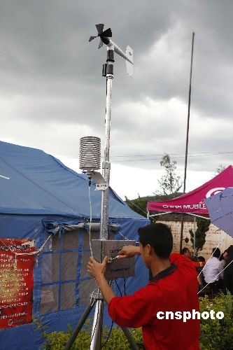 7月12日,安装在云南地震灾区的移动式自动气象站实时监测天气情况。地震发生后,云南省姚安县气象部门及时在姚安县官屯乡受灾点安装了移动式自动气象站,实时监测天气情况及时上传天气数据,为有关部门开展抗震救灾工作提供良好的支持。中新社发 刘冉阳 摄