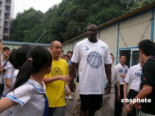图:“大鲨鱼”奥尼尔汶川地震灾区献爱心(2)