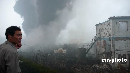7月15日凌晨,位于河南偃师市顾县镇的河南洛染股份有限公司发生爆炸事故。中新社发 张晓理 摄