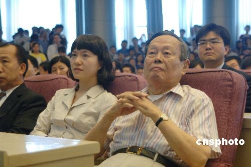7月15日上午,美国能源部长朱棣文在清华大学发表主题为《应对能源与气候变化的挑战》的演讲,杨振宁、翁帆夫妇出席。中新社发 李学仕 摄