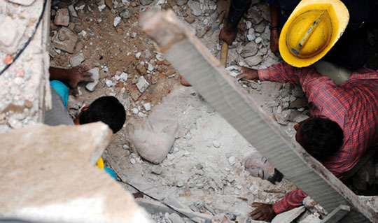 组图:印度一居民楼倒塌数人被埋(2)