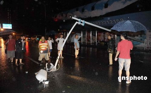 图为深南路一路灯杆被台风折断。中新社发 陈文 摄