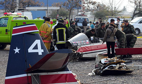 7月20日,智利一架空军飞机在训练时不幸坠毁,驾驶员受伤。图为工作人员在智利圣地亚哥一个水产市场检查失事的飞机残骸。
