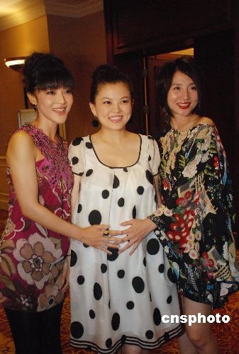 李湘孕后首亮相 挺大肚穿孕妇装宣传新片(4)