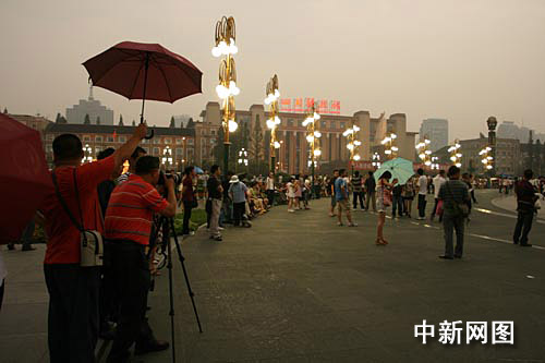 7月22日9时11分,500百年一遇的天文奇观——日全食“光临”蓉城,在天府广场漆黑一片,犹如黑夜,“追日”的人潮如涌。