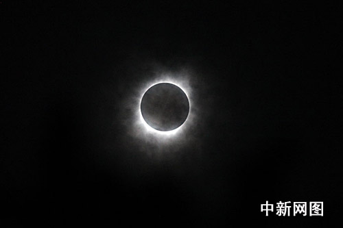 7月22日,在安徽中西部山区,天空浓云逐渐变淡后,所拍摄到的日全食景象。