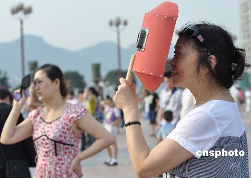 7月22日晨,几百年一遇的日全食奇景如约光临重庆,吸引众多当地市民和天文爱好者观看。图为一位重庆市民通过电焊面具观看日全食。中新社发 郭晋嘉 摄