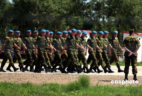 图:“和平使命2009”俄军训练队列备阅兵(4)