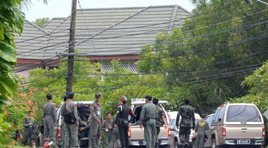 7月23日,泰国安全人员在普吉岛举行东盟部长级会议的宾馆附近检查搜爆警犬发现可疑摩托车的地点。