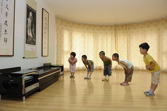 近日,太原国学幼儿园内回响着悠远的古琴曲《文王操》,孩子们恭恭敬敬地向“先师孔子行教像”行礼,然后向私塾老师和来宾行礼,他们举止有度、儒雅大方,让成年人都自愧不如。胡远嘉/CFP