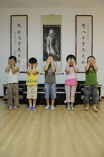 图:国学幼儿园里孩童向孔子像行礼(3)