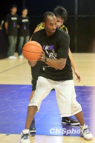 7月25日,NBA巨星科比·布莱恩特亮相上海,亲自向“全天候战训营”的小球员们传授篮球绝技。中新社发 汤彦俊 摄