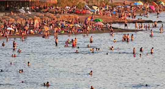 7月25日,希腊首都雅典最高气温达到43摄氏度,人们纷纷来到海边避暑。