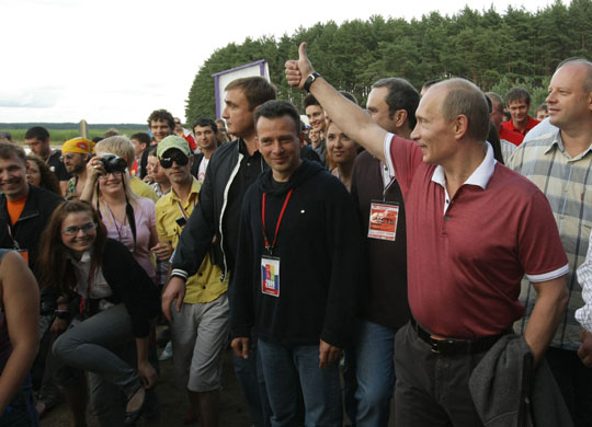 当地时间7月25日,在俄罗斯特维尔州,俄罗斯总理普京参观了在这里举行的2009国际青年夏令营。