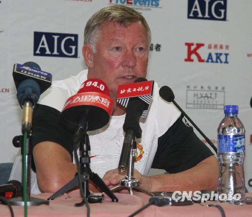 北京时间26日晚,曼联亚洲之旅的最后一战在杭州黄龙体育中心落下帷幕,带着8比2的结果,福格森很开心地出席了赛后发布会。图为福格森回答记者提问时表示,杭州之行很完美。中新社发 柴燕菲 摄