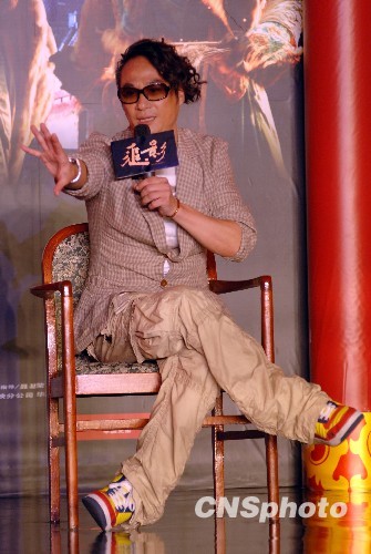 图为导演吴镇宇发布会上搞怪姿势不断。中新社发 李学仕 摄