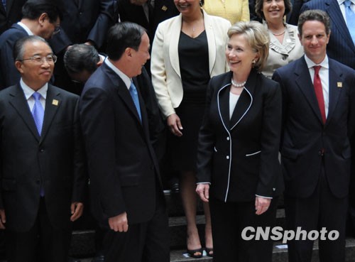首轮中美战略与经济对话7月27日在华盛顿开幕。本次对话分别由国务院副总理王岐山、国务委员戴秉国与美国国务卿希拉里与美国财长盖特纳主持。中新社发 李静 摄