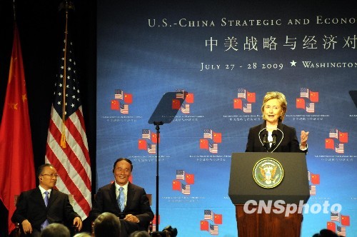 首轮中美战略与经济对话7月27日在华盛顿开幕。图为美国国务卿希拉里·克林顿在开幕式上致辞。中新社发 李静 摄