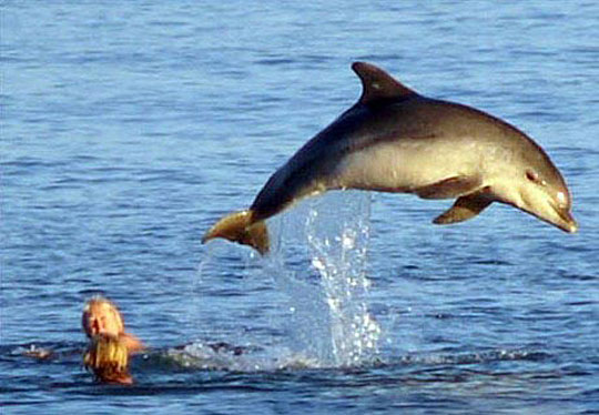 图:“贪玩”海豚缠着女游客不许其上岸(3)