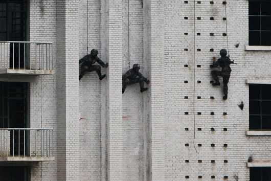 图为北京卫戍区警卫三师官兵们的精彩表演。Feng Li/CFP