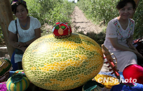图:新疆维族姑娘载歌载舞欢庆哈密瓜节开幕(5)