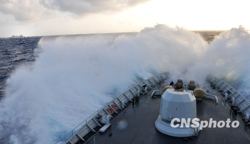 7月29日上午(北京时间13时30分),为了确保舰艇海上航行安全,避免遭遇海上大风浪区中心风暴的冲击,中国海军第三批护航编队通过改变航线前行,顺利穿过印度洋阿拉伯海大风浪区,安全转向,继续向亚丁湾、索马里海域行驶,确保按时抵达任务海区与第二批护航编队实现“海上会师”。