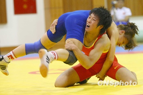 7月29日,中俄青少年运动会进入到第二日的争夺。在下午进行的女子自由式摔跤48公斤级比赛中,中国选手孙亚楠(红)战胜俄罗斯运动员萨姆科娃,摘得桂冠。中新社发 富田 摄
