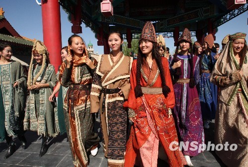 图为参赛佳丽身穿西域古代民族服饰展示风采。中新社发 钱兴强 摄