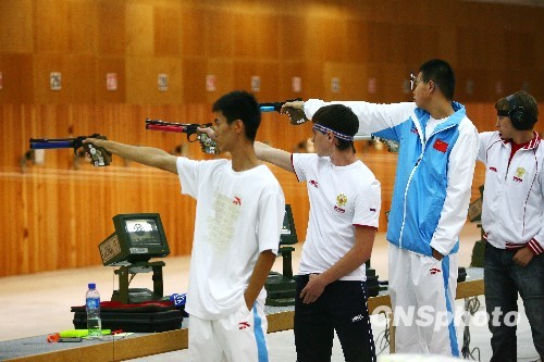 7月30日上午,北京朝阳体育中心,参加中俄青少年运动会男子10米气手枪决赛的运动员正全神贯注投入角逐。最终,来自俄罗斯的17岁小将马尔斯获得冠军。