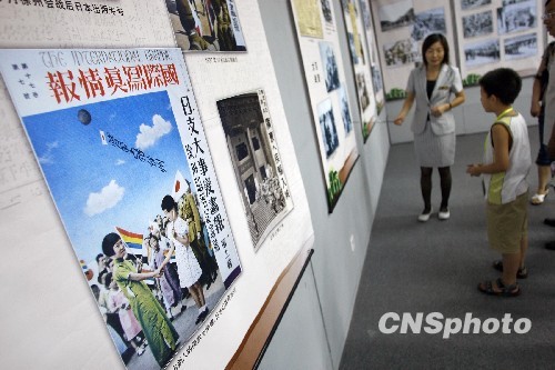 7月30日,北京一些家长陪同孩子在观看展览。近日,“没有共产党就没有新中国--庆祝新中国成立60周年新闻史料全国巡展”在国家图书馆举行,新中国首张北京地图、《人民日报》创刊号原件等亮相展览,吸引不少市民前往参观学习。